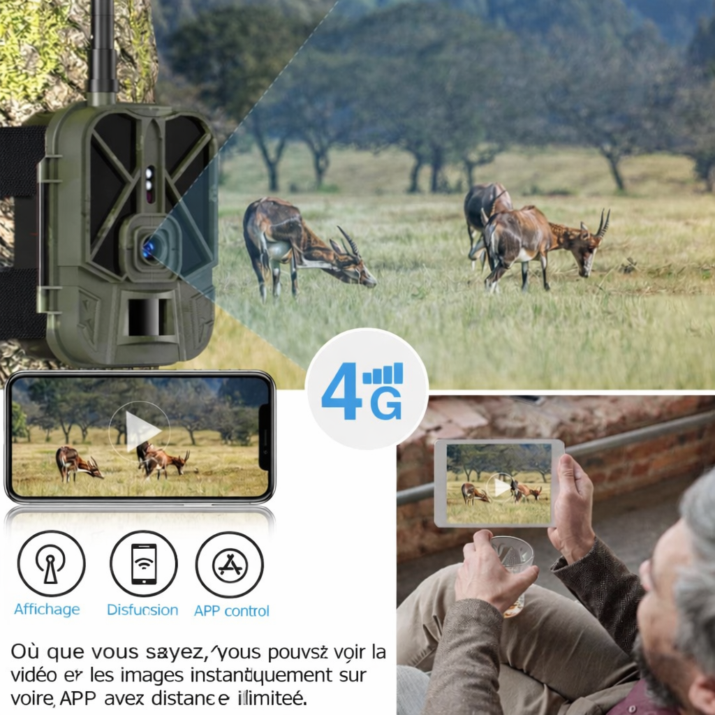 Caméra de Chasse 4G HD – Live Vidéo sur Mobile, Vision Nocturne 940nm et 12 Mois d'Autonomie
