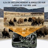 Batterie lithium 5000mAh rechargeable incluse, résolution 4K, 20 mégapixels et 40 LED infrarouge 940nm low glow : cette caméra de chasse 4K offre une autonomie exceptionnelle de 24 mois en veille sans compromis sur la qualité d'image. Déclenchement PIR en 0.3 seconde, angle 120°, certification IP66 et fonctionnement de -20°C à +70°C une caméra robuste et autonome pensée pour les surveillances longue durée en conditions extrêmes.