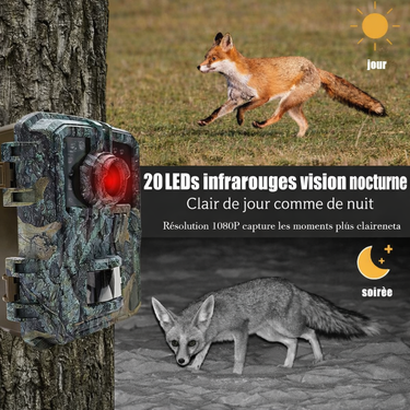 Résolution Full HD 1080P, capteur CMOS couleur, déclenchement PIR en 0.5 seconde et vision nocturne infrarouge : cette caméra de chasse capte chaque passage de la faune avec netteté, de jour comme en pleine obscurité. Boîtier IP65 waterproof, écran intégré 2 pouces et télécommande incluse, un équipement portable et simple à installer partout en extérieur.